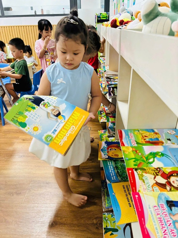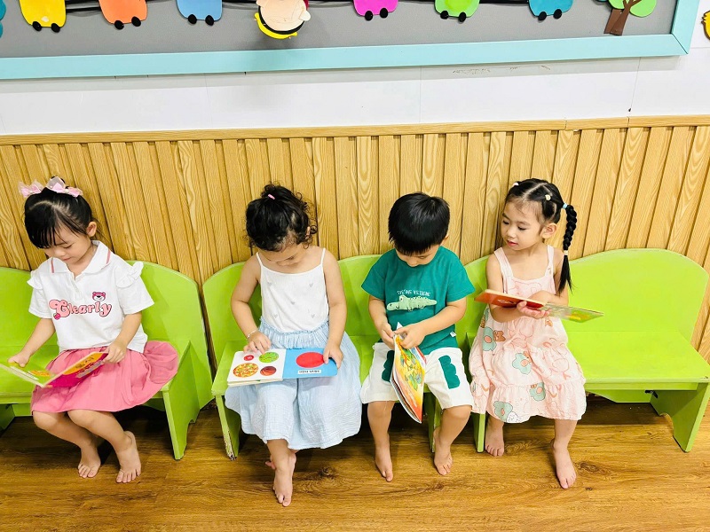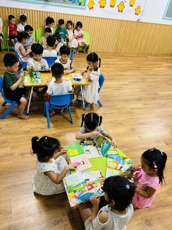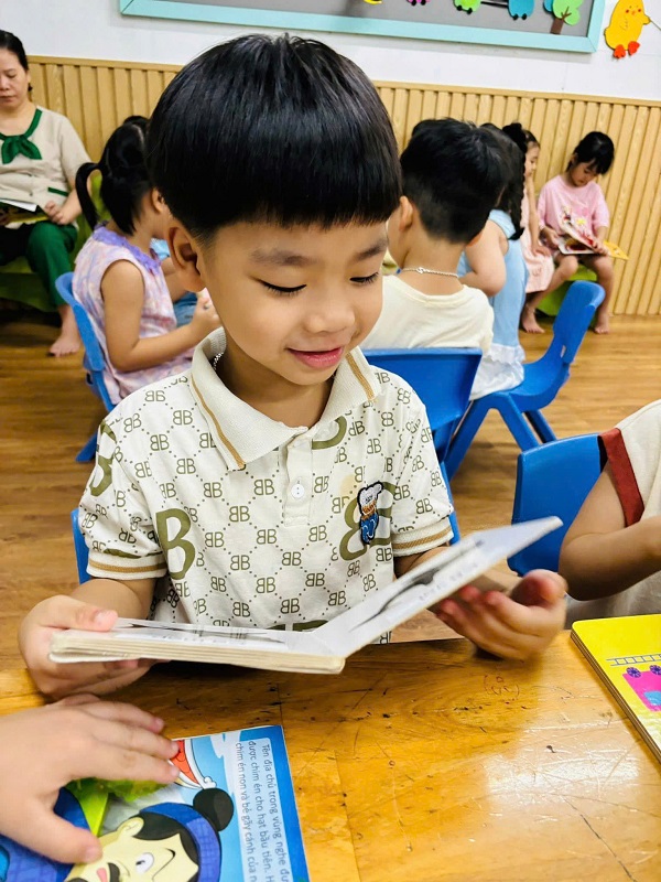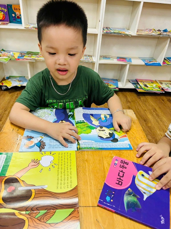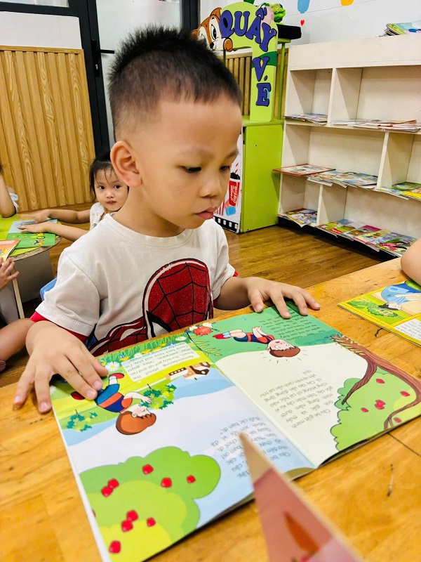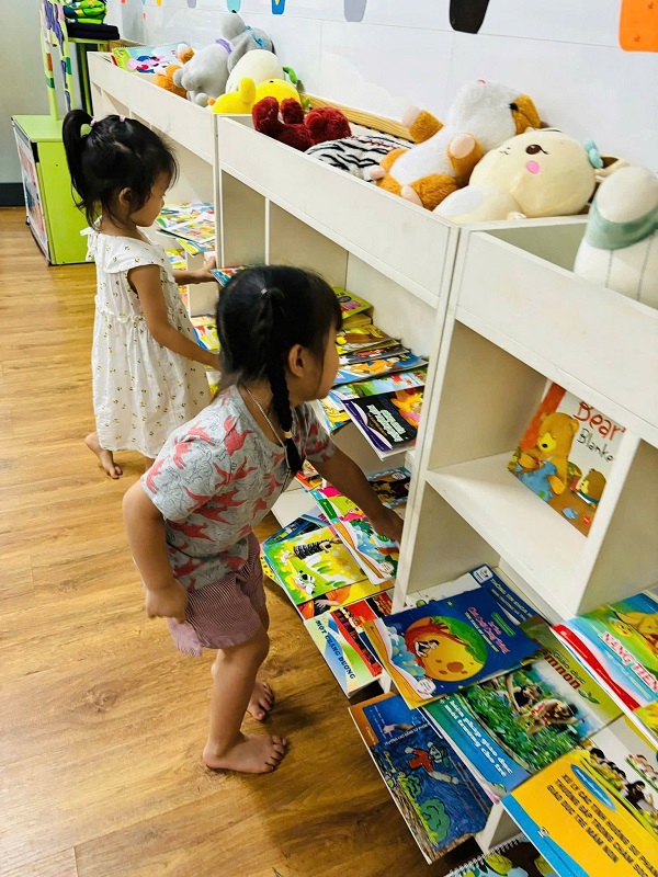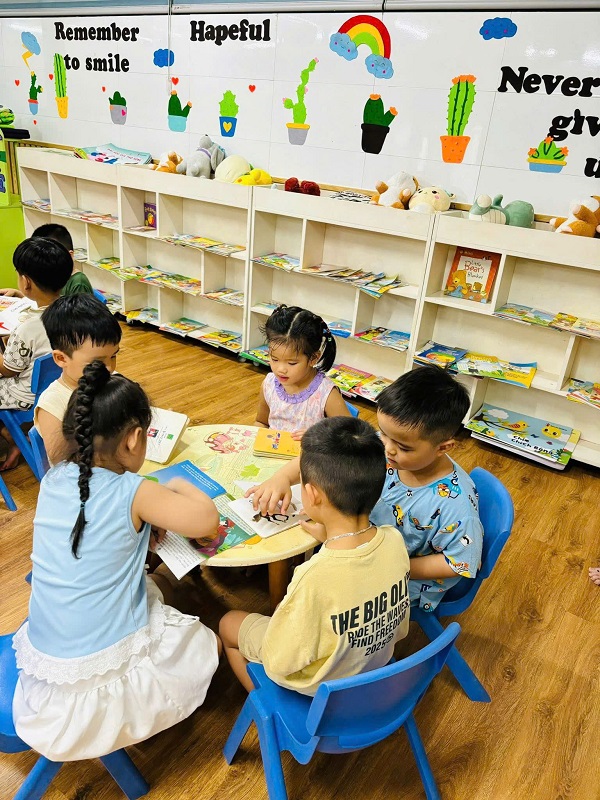 Giờ đọc sách của các bé yêu Nhỡ 1 tại thư viện trường