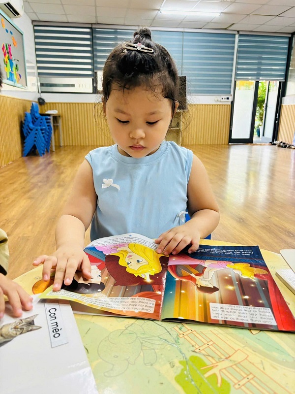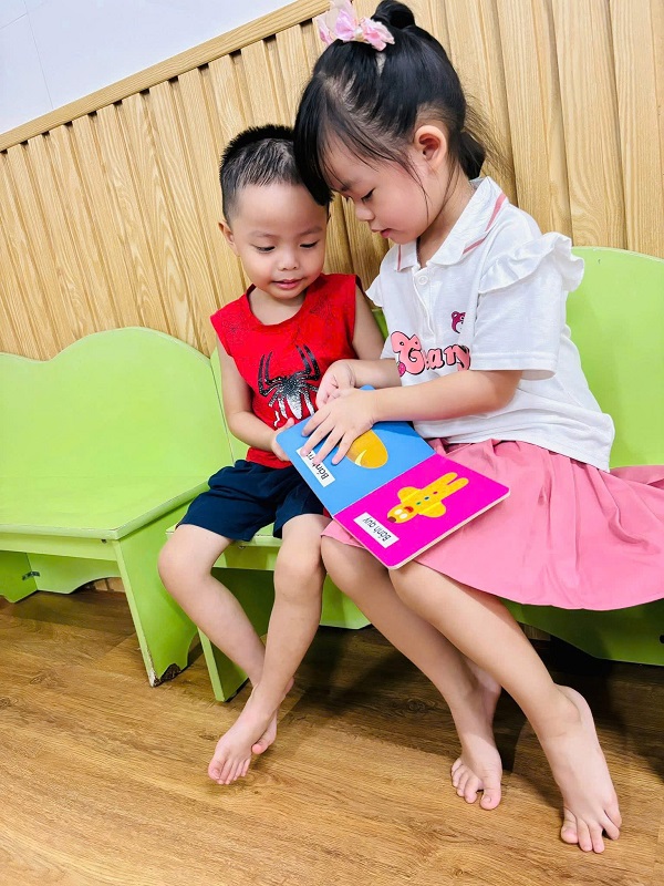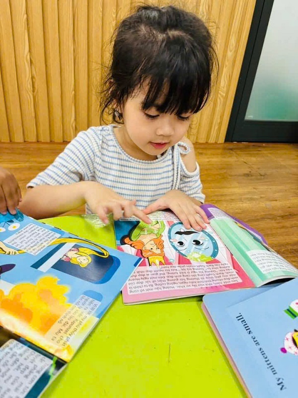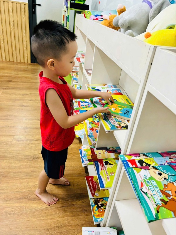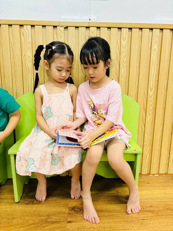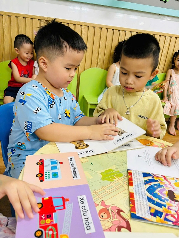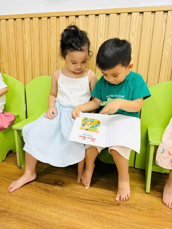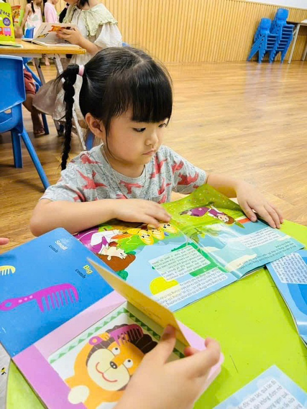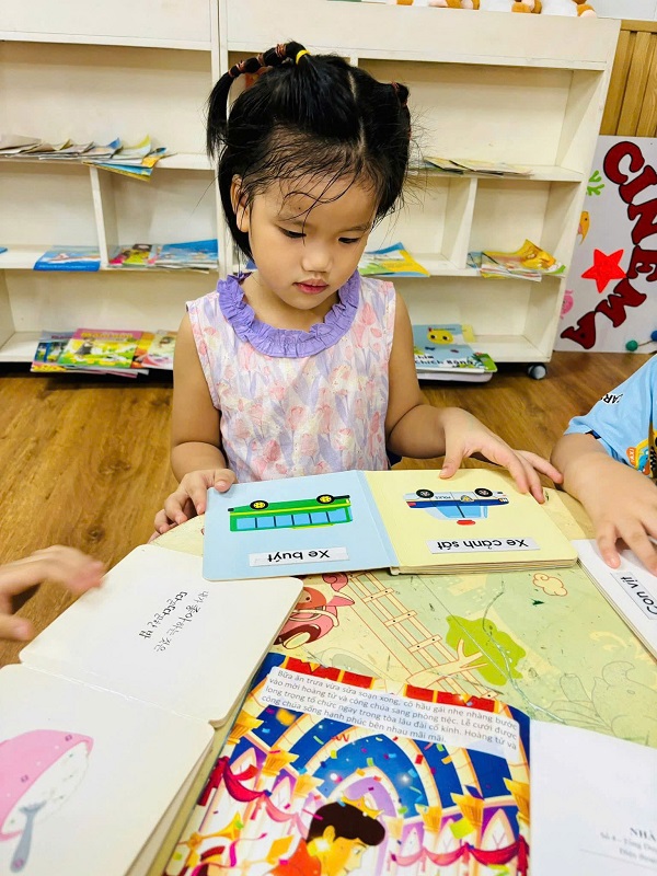 Giờ đọc sách của các bé yêu Nhỡ 1 tại thư viện trường