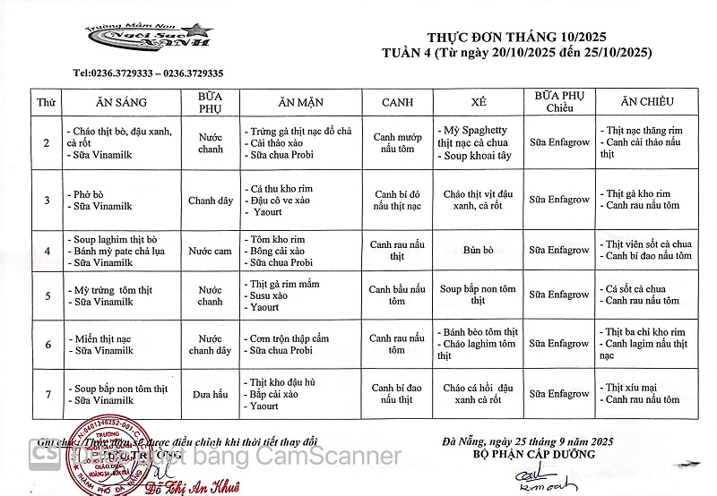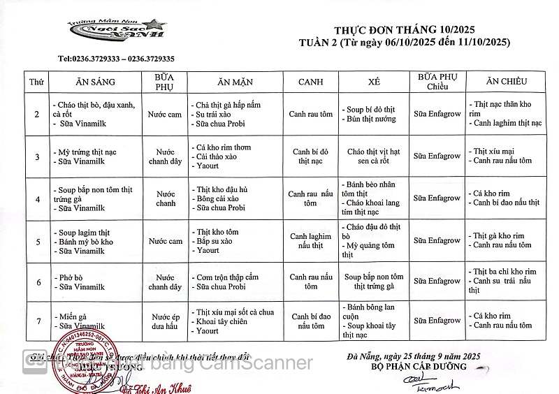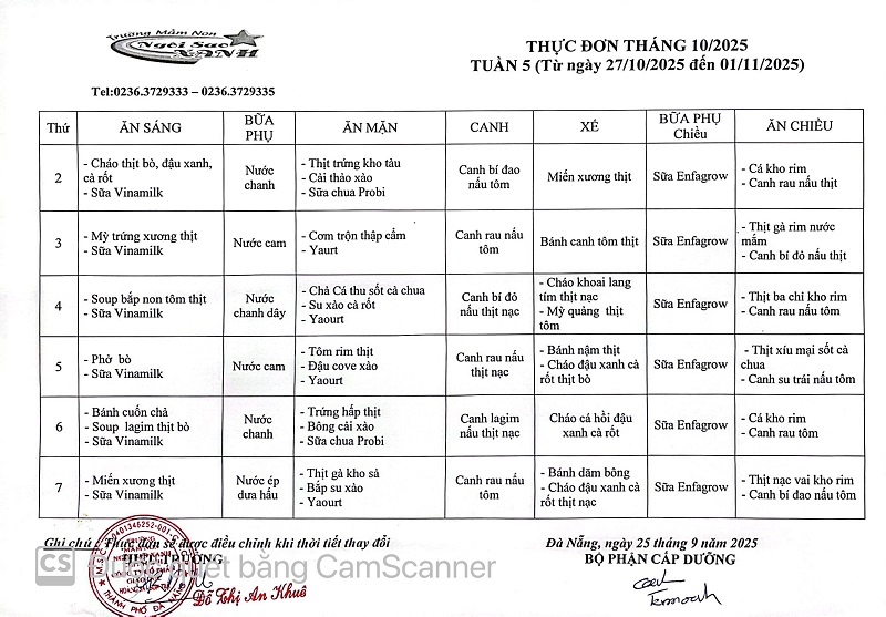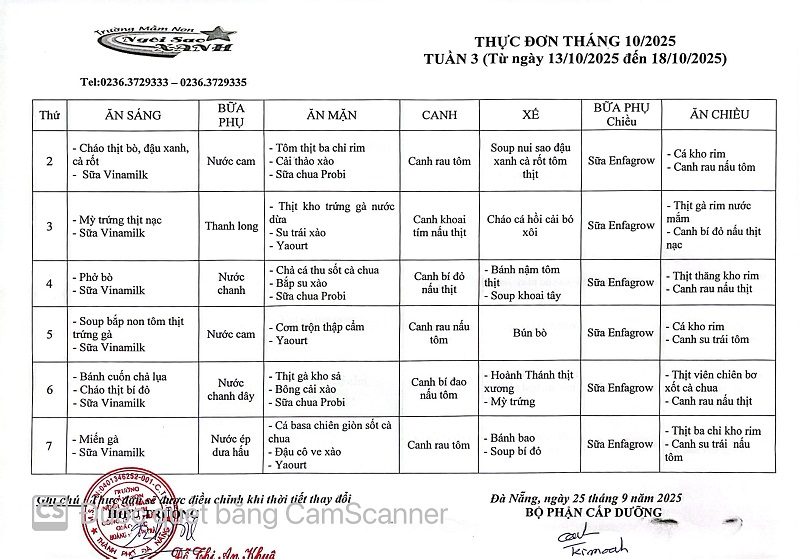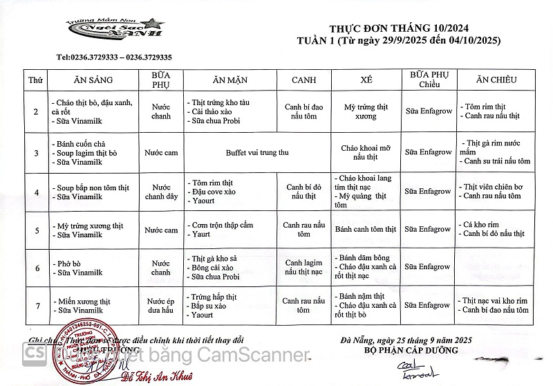 THỰC ĐƠN THÁNG 10 NĂM 2025 CỦA CÁC BÉ
