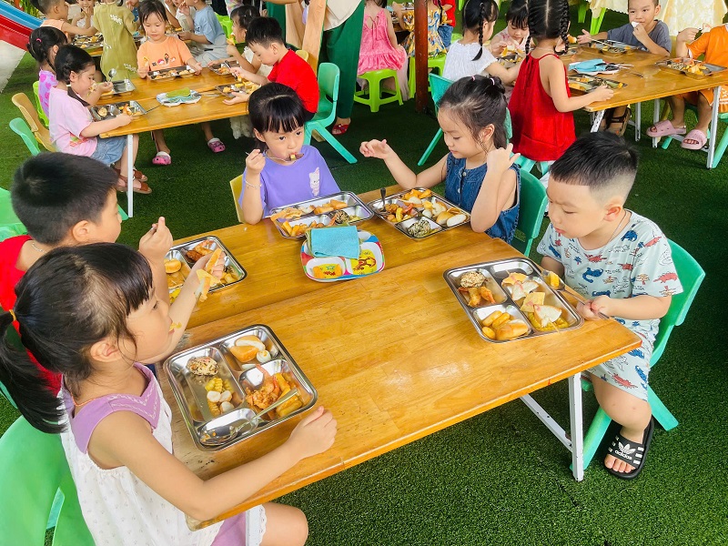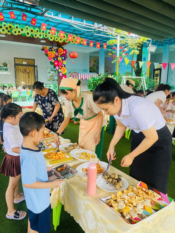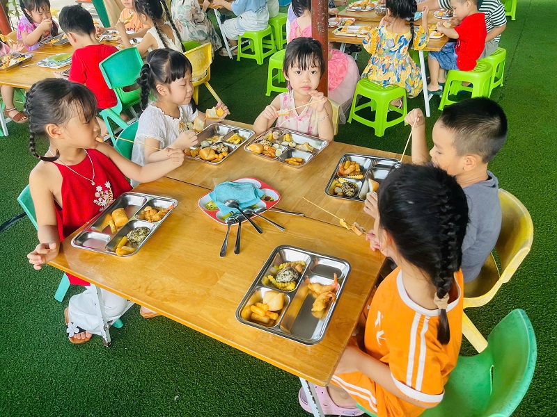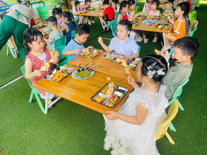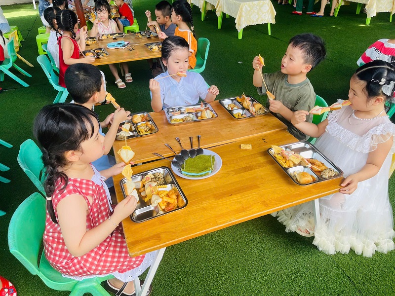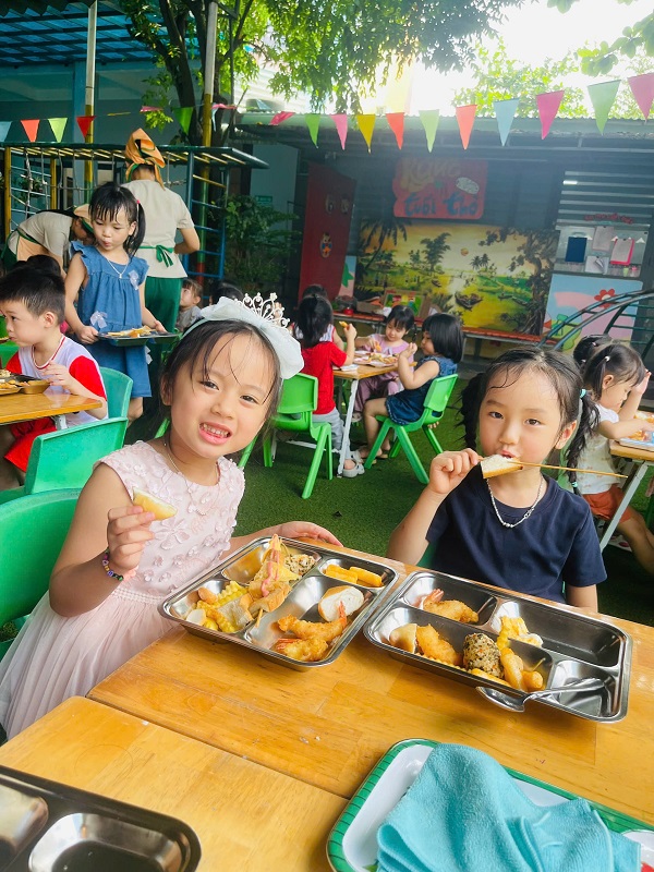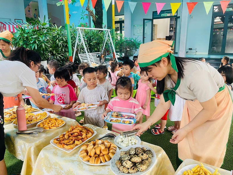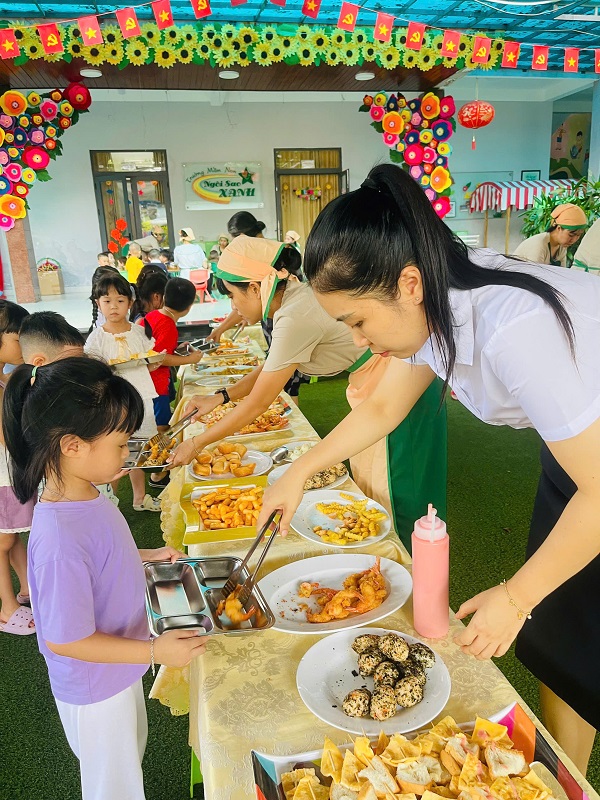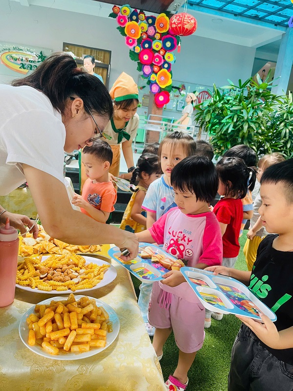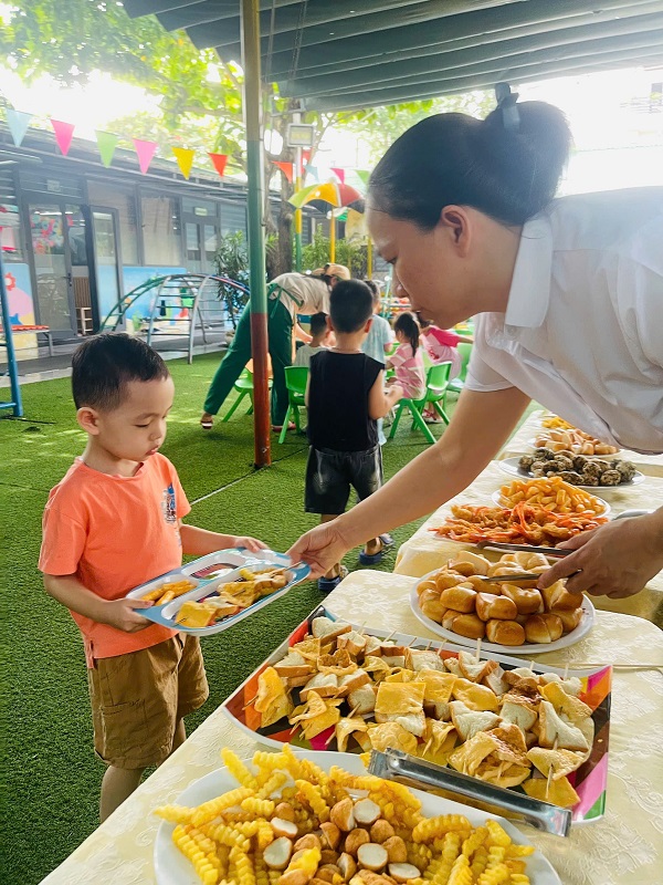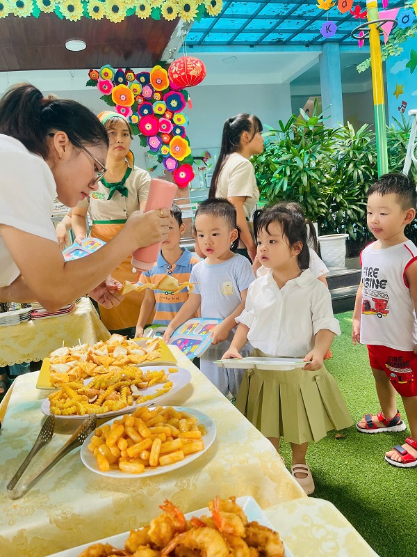 Qua bữa tiệc, các bé không chỉ được thưởng thức món ăn yêu thích mà còn học được nhiều kỹ năng sống: biết xếp hàng, chọn món vừa đủ, biết giữ vệ sinh, ăn uống gọn gàng, học cách chia sẻ và nhường nhịn với bạn bè.