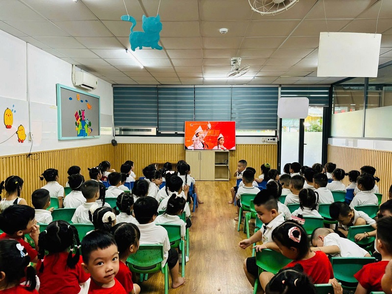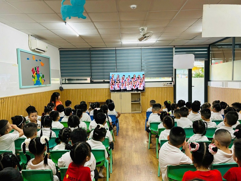 Ngay sau đó, các bé đã được tham dự lễ khai giảng trực tuyến toàn ngành – chào mừng kỷ niệm 80 năm thành lập bộ quốc gia Bộ giáo dục (Nay là Bộ GDĐT).. Buổi lễ không chỉ là dịp để khơi dậy tinh thần học tập mà còn giúp các con hình thành niềm tự hào với truyền thống giáo dục nước nhà.